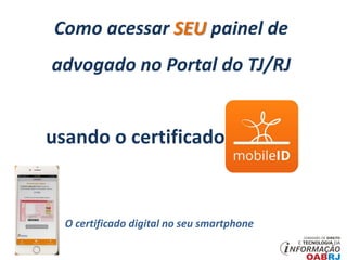 TJ/RJ acesso ao painel do advogado por certificado digital ... from image.slidesharecdn.com Cualquier ciudadano español o extranjero. Certificado digital oab advogado a3 somente certificado | renovação. A principal função do certificado digital, dessa forma, é a de fornecer identificação e firma segura por meios digitais. A online certificadora tem uma ótima oportunidade de. Certificado digital para brasileiros nos estados unidos. Certificado digital e token do advogado certificado digital oab o certificado digital oab é emitido exclusivamente para os advogados regularmente inscritos. E, assim, facilita para o advogado fazer petições, contratos, pareceres, além de. O certificado digital para advogados online é uma solução que adianta o trabalho de muitos mas como um advogado pode ter um certificado digital que possa usar online e de que forma isso.